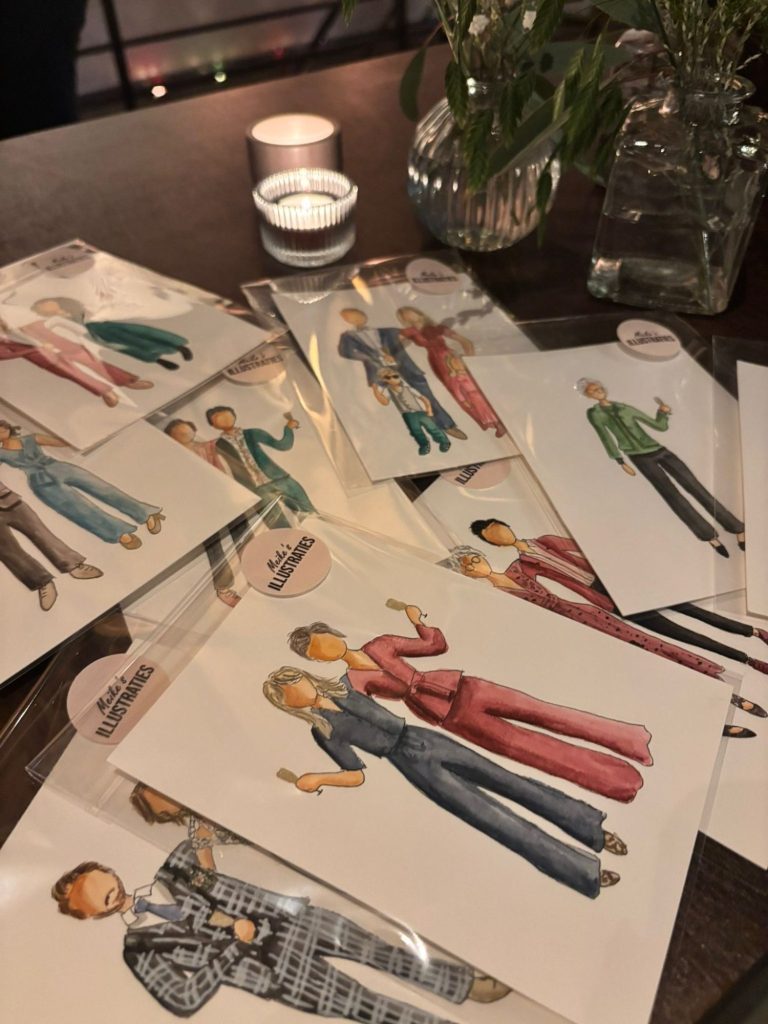 Alle genoemde tarieven zijn inclusief hoogwaardige aquarelpapieren, professionele materialen en een nette verpakking zodat elk portret veilig mee naar huis genomen kan worden. Tijdens het evenement werk ik samen met een assistente die zorgt voor een soepel proces — zij begeleidt de gasten en maakt foto’s van hen. Zo kan ik me volledig focussen op het schilderen aan de hand van de gemaakte foto en halen we het maximale uit de geboekte tijd.